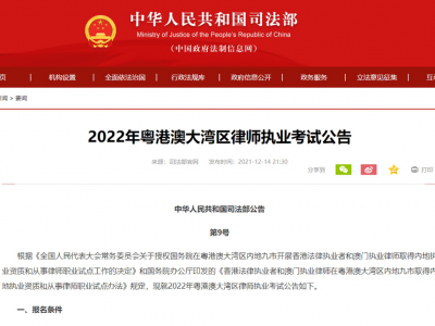 国家司法部昨日(14日)公布2022年粤港澳大湾区律师执业考试详情,指明港澳考生必须拥护《中华人民共和国宪法》、《中华人民共和国香港特别行政区基本法》和《中华人民共和国澳门特别行政区基本法》,报名时要提交相关承诺书。 司法部的公告列明报名者要符合六项条件: (一)香港特别行政区、澳门特别行政区永久性居民中的中国公民。 (二)拥护《中华人民共和国宪法》、《中华人民共和国香港特别行政区基本法》和《中华人民共和国澳门特别行政区基本法》。 (三)依据香港特别行政区有关法律,经香港特别行政区高等法院准许,在律师、大律师登记册上登记,且未被暂时吊销执业资格的律师、大律师,或者在澳门律师公会有效确定注册的执业律师。 (四)具有累计五年以上律师执业经历。 (五)职业道德良好,未有因不良名誉或者违反职业道德受惩处的记录。 (六)能用中文书写法律文书,能用普通话进行业务活动。 具体考试科目方面,则包括习近平法治思想、宪法、香港特别行政区基本法、澳门特别行政区基本法、中国法律史、内地司法制度和律师职业道德、民法、商法、民事诉讼法、仲裁法、刑法、刑事诉讼法、行政法、行政诉讼法。