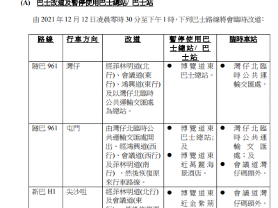连续停办两年的「新世界维港泳」今年复办,将于本周日(12日)早上举行。今届赛事采用全新赛道,泳手由湾仔金紫荆广场公众码头出发,以尖沙咀星光大道为终点。 运输署提醒市民,为配合赛事,湾仔北及尖沙咀将实施特别交通及运输安排。其中,湾仔-尖沙咀和中环-红磡的渡轮服务,将于渡海泳比赛期间暂停;12日凌晨0时30分至下午1时期间,湾仔金紫荆广场外的一段博览道东(包括上落客区)临时封闭,过海隧道巴士961及新巴H1临时改道。 此外,所有参加者须于比赛举行日期前14天完成接种两剂新冠疫苗,并于赛前出示阴性病毒检测证明。