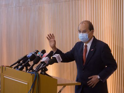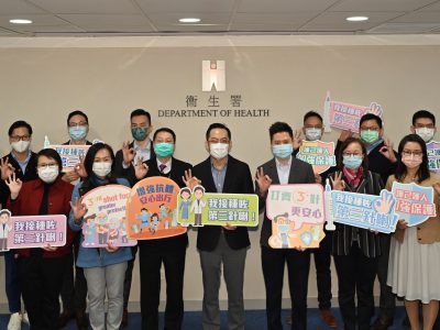 卫生署署长林文健今日(2日)联同多名卫生署服务主管,于卫生署诊所接种第三剂新冠疫苗(克尔来福),并呼吁尚未接种第一、二剂疫苗的市民尽快接种,护己护人。 林文健表示,全球疫情仍然严峻,香港有需要继续提高疫苗接种率,建立更强的保护屏障,以应对未来新出现的变异病毒株等因素带来的风险。他指出,新出现的变异病毒株对疫情造成冲击的影响,如会否影响疫苗预防感染、治疗效果等的有效性等,目前还未能完全掌握。但疫苗对感染新冠病毒后免于出现并发重症甚至死亡仍然是至为重要。他呼吁市民尤其是高危组别尽快接种疫苗,保障自己、家人和整体社会的健康。