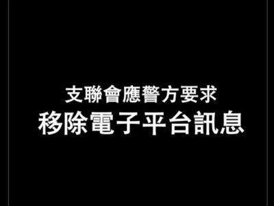 警方要求删指定电子平台讯息支联会FB另起炉灶