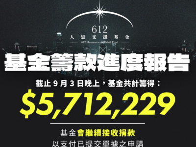 煽惑并鼓动支援反修例暴徒的「612黑暴基金」,上月宣布因应负责资金托管及收支服务的「真普选联盟」会于短期内结束运作,将「有秩序地停止运作」,包括停收新个案、10月底解散秘书处。然其仍然宣称会继续筹款接受捐款。 「612 基金」公布收档后半个月,截止昨晚(3日),基金共筹得571万元,8月期间亦收到75笔退还款项,共58万元。基金指,目前正处理最后一批资助申请,会计算所需用款金额,日内公布更新的筹款目标。 在「612基金」宣布结束后,警方在星期三(1日)证实国家安全处正就「612基金」涉嫌违反《香港国安法》或其他香港法例展开调查,消息指警方已向高等法院取得「提交物料令」,要求「612基金」信托人及真普联公司董事在指定限期内,提供有关组织运作及资金往来等资料,包括受助人及捐款人等。